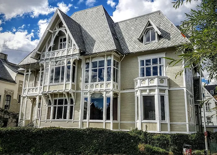 Das 280 m^2 große Apartment Villa Karine liegt lediglich 15 Gehminuten vom Strand Mohlenpris badeplass entfernt und bietet Wandern zum aktiven Zeitvertreib. Standseilbahn Fløibanen ist in 25 Minuten zu Fuß zu erreichen.